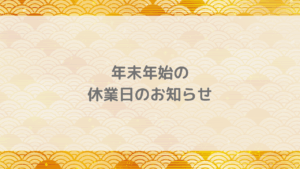 拝啓 時下ますますご清祥のこととお慶び申し上げます。 平素は格別のお引き立てを賜り厚く御礼申し上げます。 誠に勝手ながら、以下の期間を休業とさせていただきます。 年末年始休業期間2025年12月27日(土)~2026年1月4日(日) ※休業期間中にお問い合わせいただきました件に関しては、2026年1月5日より順次ご対応させていただきます。 ご迷惑をお掛けいたしますが、何卒ご了承くださいますよう宜しくお願い申し上げます。 敬具